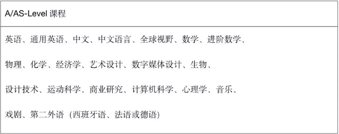 12-13年级:A-Level课程,两年制,学生需选择3-4门课程进行学习。部分学生选择在年上AS课程,近年来也有越来越多的学生选择在A Level年上EPQ课程(A-Level课程以外的独立研究项目),该课程引导学生以大学学习方法来学习,保证学生在进入大学后能取得良好成绩。EPQ课程占整个A Level课程一半学分,需有120小时指导学时。该课程帮助学生更加独立,引导学生完成自己感兴趣的课题研究。