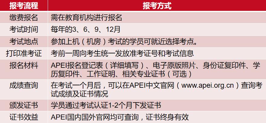 APEI国际注册心理师 由于之前的国家心理师考试过于强调知识的学习,缺乏技能指导和实操训练,实用性不大。因此将心理师从国家职业目录中取消。 为弥补人才缺口,从美国职业教育协会(APEI)引入注册国际心理师技能证书 ,重点在强化技能学习,考核合格后由美国职业教育协会颁发心理师技能证书。 美国职业教育学会 (Amercian Professional Education Institute简称APEI)由美国加州职业教育学会联合美国佐治亚技术学院,加州大学,加州理工等大学,以及企业职业工会的专家教授共同组建成立的非营利性教育组织,是一所研究并推广职业教育和认证的全球化专业机构。APEI证书全球通用,世界500强企业中64%的中高层都拥有APEI注册国际职业认证,APEI认证现已成为各大公司衡量人才的重要参考和依据。 适用人群 家长:为子女、儿童作心理健康教育的家长; 在校:大学生心理学、教育学、医学专业从业人员及在校大学生; 社会人士:教师、卫生技术人员、公务员、企业管理、部队管理干部、社区社会工作者; 其他:有志从事心理的社会各界人士