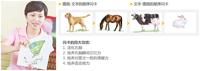 课程特色:以培养孩子心灵为中心,结合孩子不同成长阶段大脑发育的特点,使用闪卡、想象力训练等特色课程发掘孩子的记忆力、想象力、专注力、语言能力等等。
