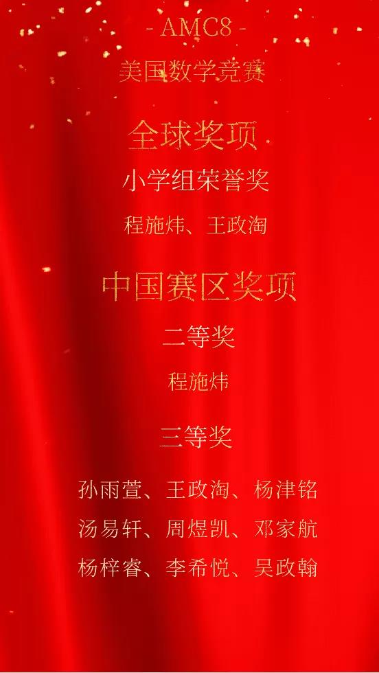 “2020年美国数学竞赛(AMC8)” 成绩出炉啦 !义乌枫叶国际学校的学子们首次参加此次大赛,共有2名同学获得全球奖项,10名同学获得了中国赛区奖项,可喜可贺!