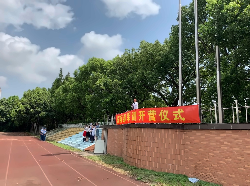 2019年8月19日早上8:00,新生家长带领孩子在国际部一楼报道,国际部涂彪校长在一楼阶梯教室针对军训向所有家长发起动员,学生处毕伟琦主任组织军训开营仪式。在开营仪式上,学生代表戴同学发言,会将昂扬的斗志和饱满的热情投入到军训活动中,展现我们学子奋发向上的决心和无限的青春力量。